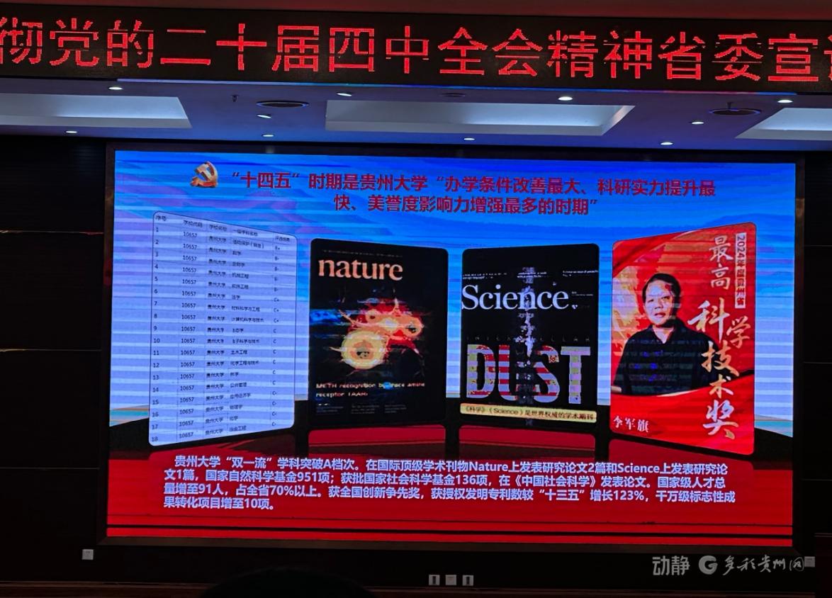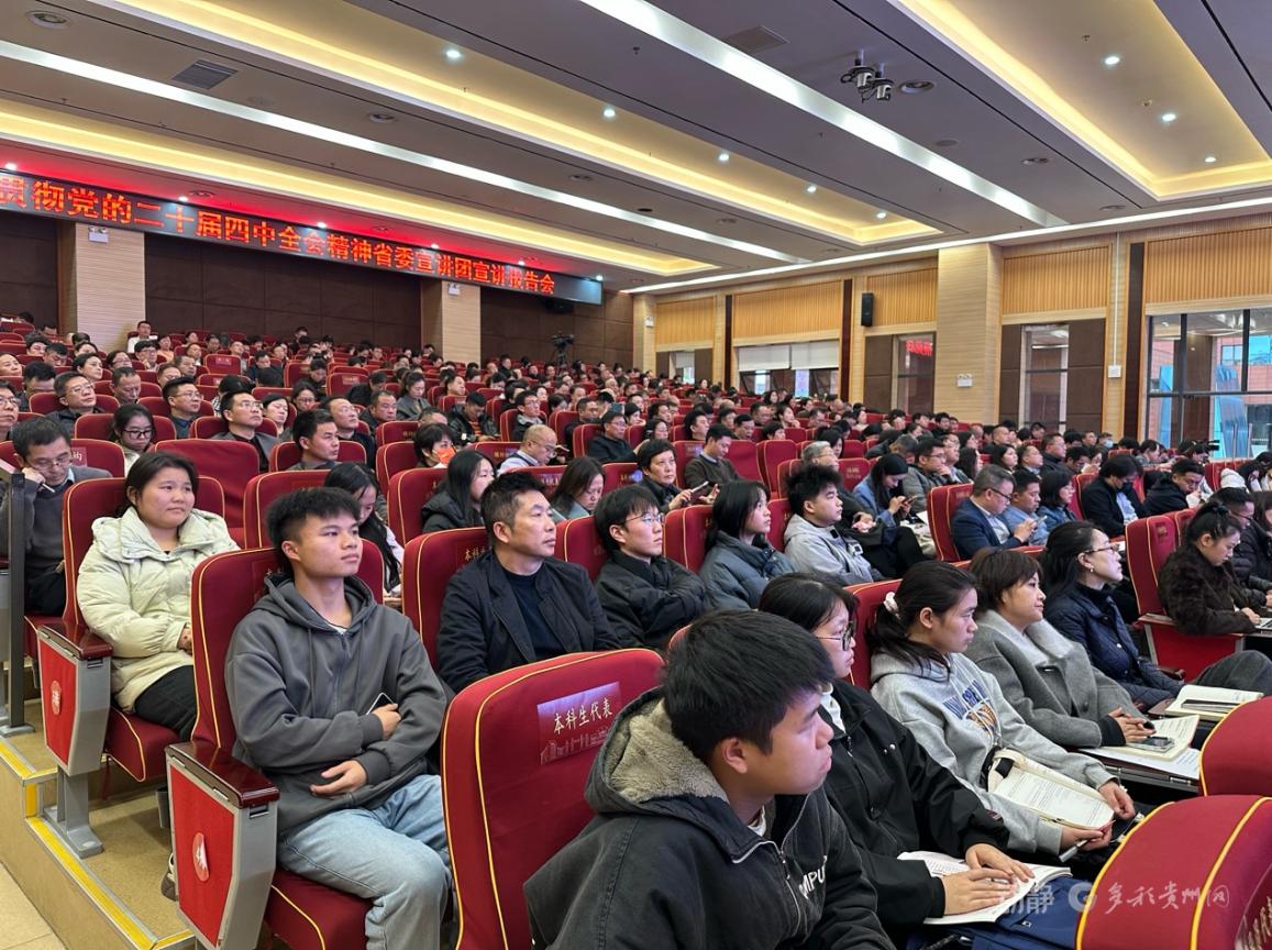 11月18日(昨天),学习贯彻党的二十届四中全会精神贵州省委宣讲团在贵州大学宣讲。省委宣讲团成员,中共贵州省委党校(贵州行政学院)常务副校(院)长、中共贵州省委讲师团团长吴刚平作宣讲报告。