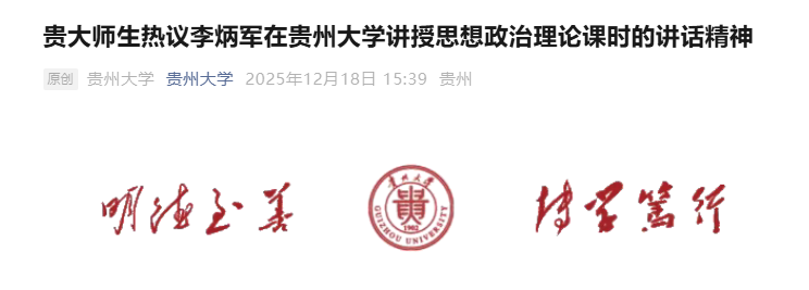 12月17日,省委副书记、省长李炳军到贵州大学讲授思想政治理论课,围绕学习贯彻党的二十届四中全会精神和习近平总书记在贵州考察时的重要讲话精神,全面落实省委十三届八次全会部署,与广大师生交流,希望大家胸怀“国之大者”,心系“省之大计”,为在中国式现代化进程中展现贵州新风采努力奋斗。贵大师生纷纷表示,要勇挑时代重担,在学习中锤炼本领,在实践中增长才干。
